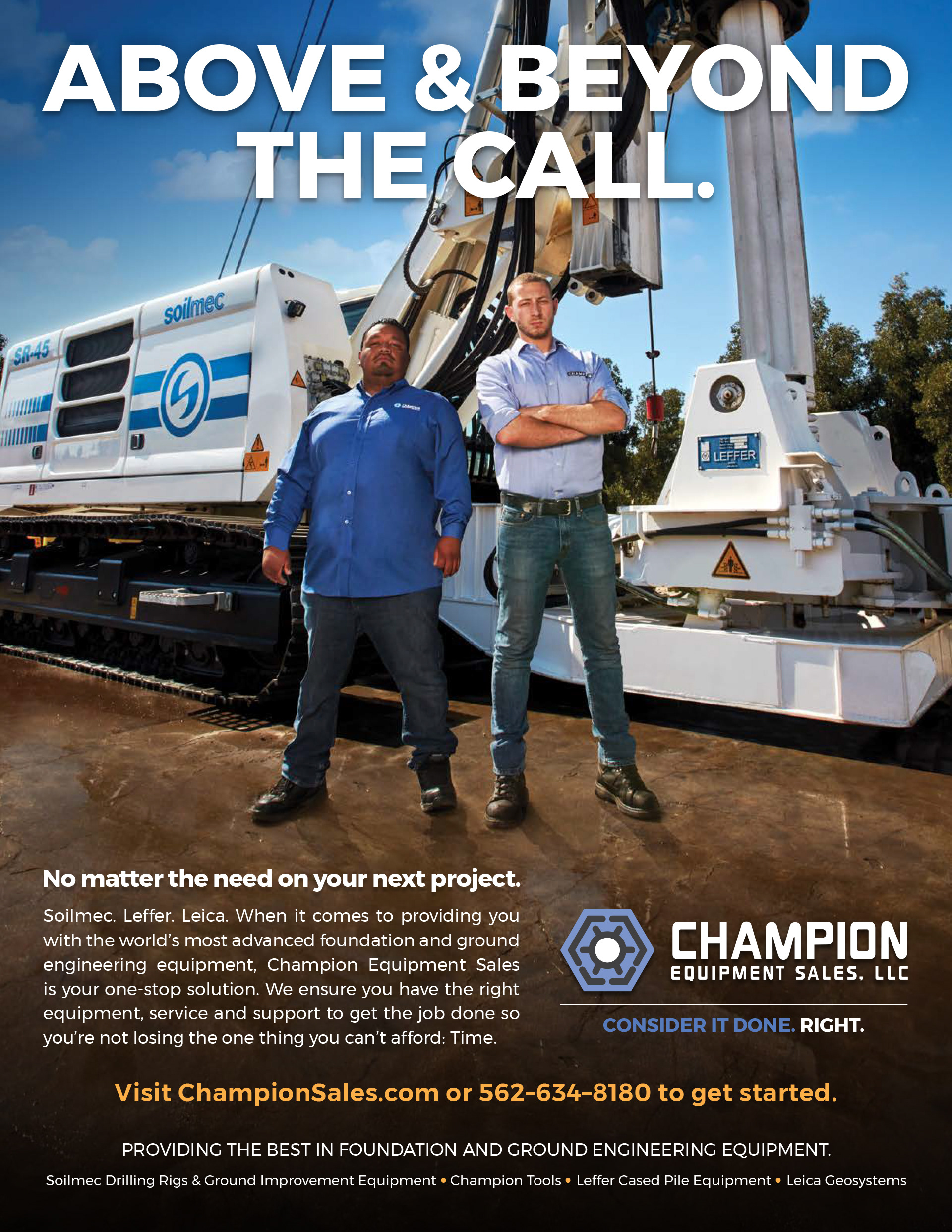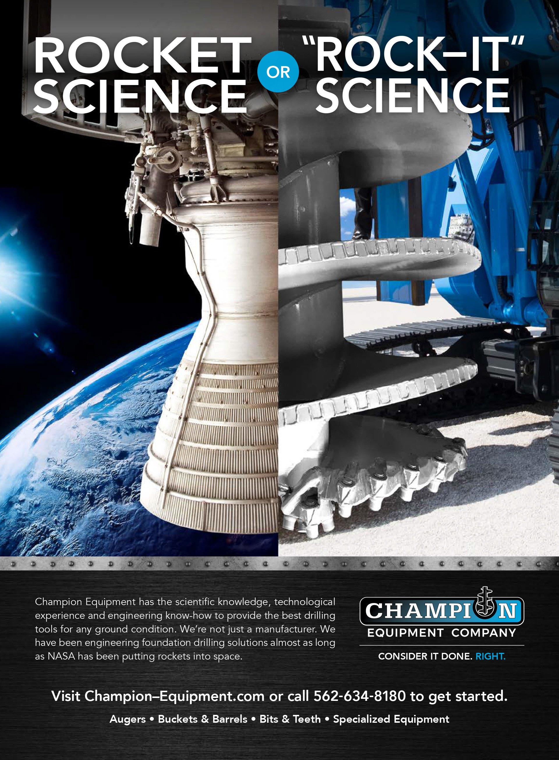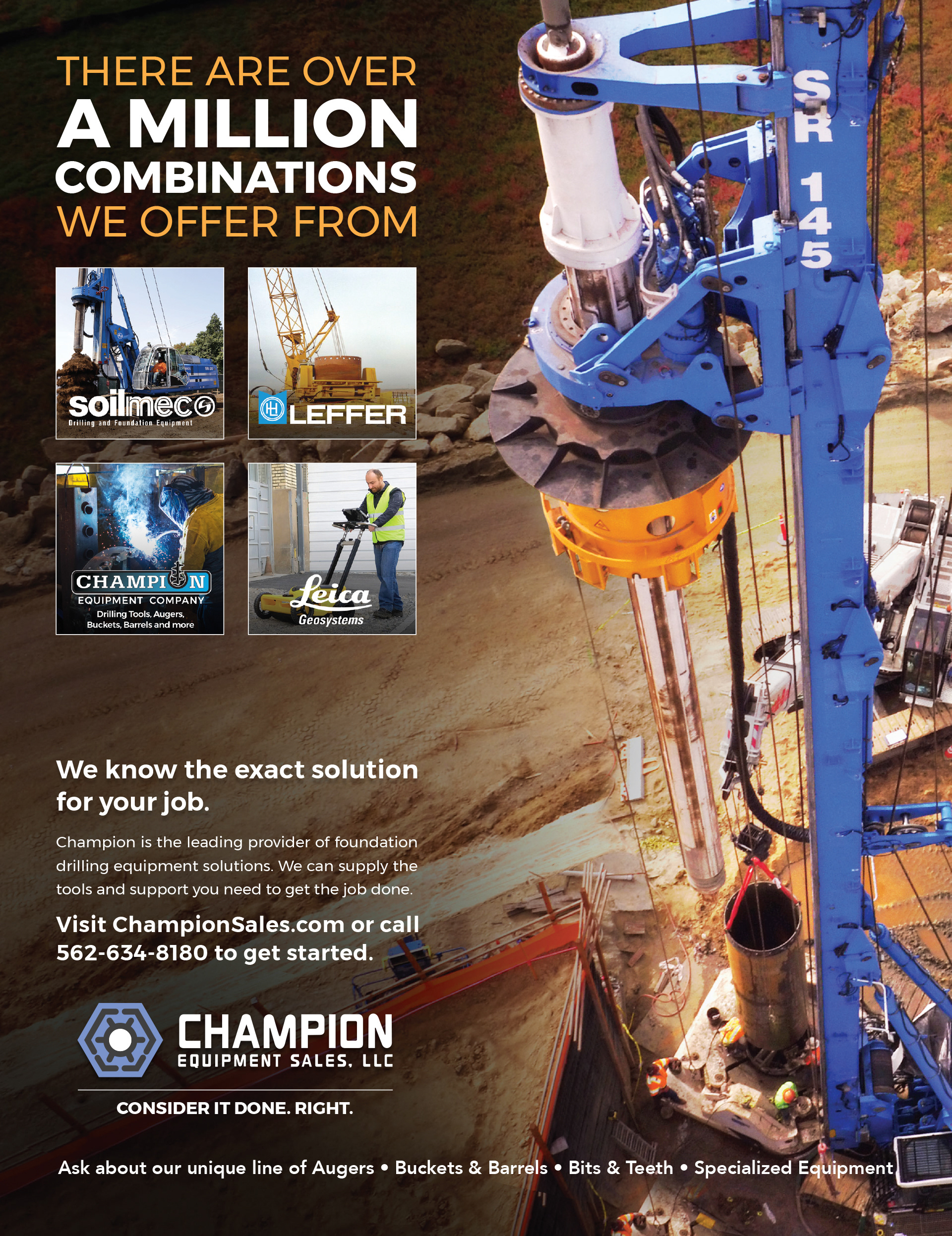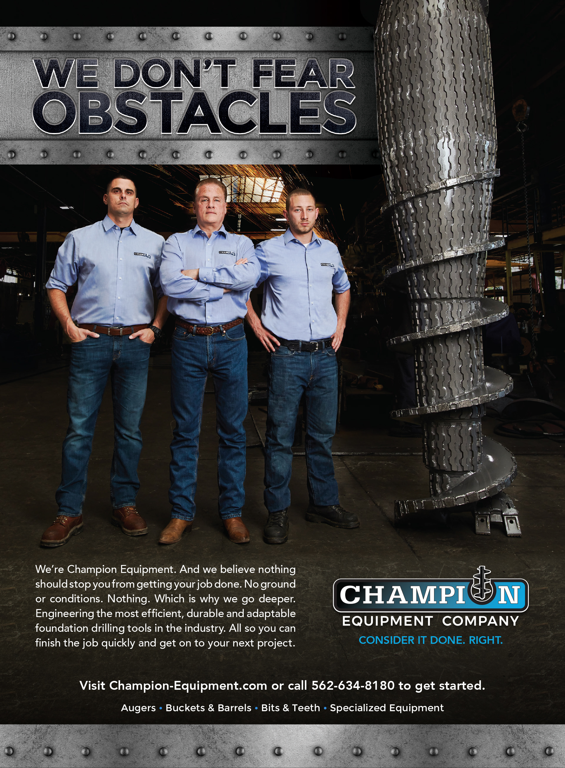 Champion Equipment Company (CEC) is a global leader in the design and construction manufacturing of custom drilling tools and equipment. With over 60 years of in-field experience and engineering, they have provided comprehensive equipment solutions that enable foundation-drilling contractors to achieve unmatched productivity in any ground condition or work environment.