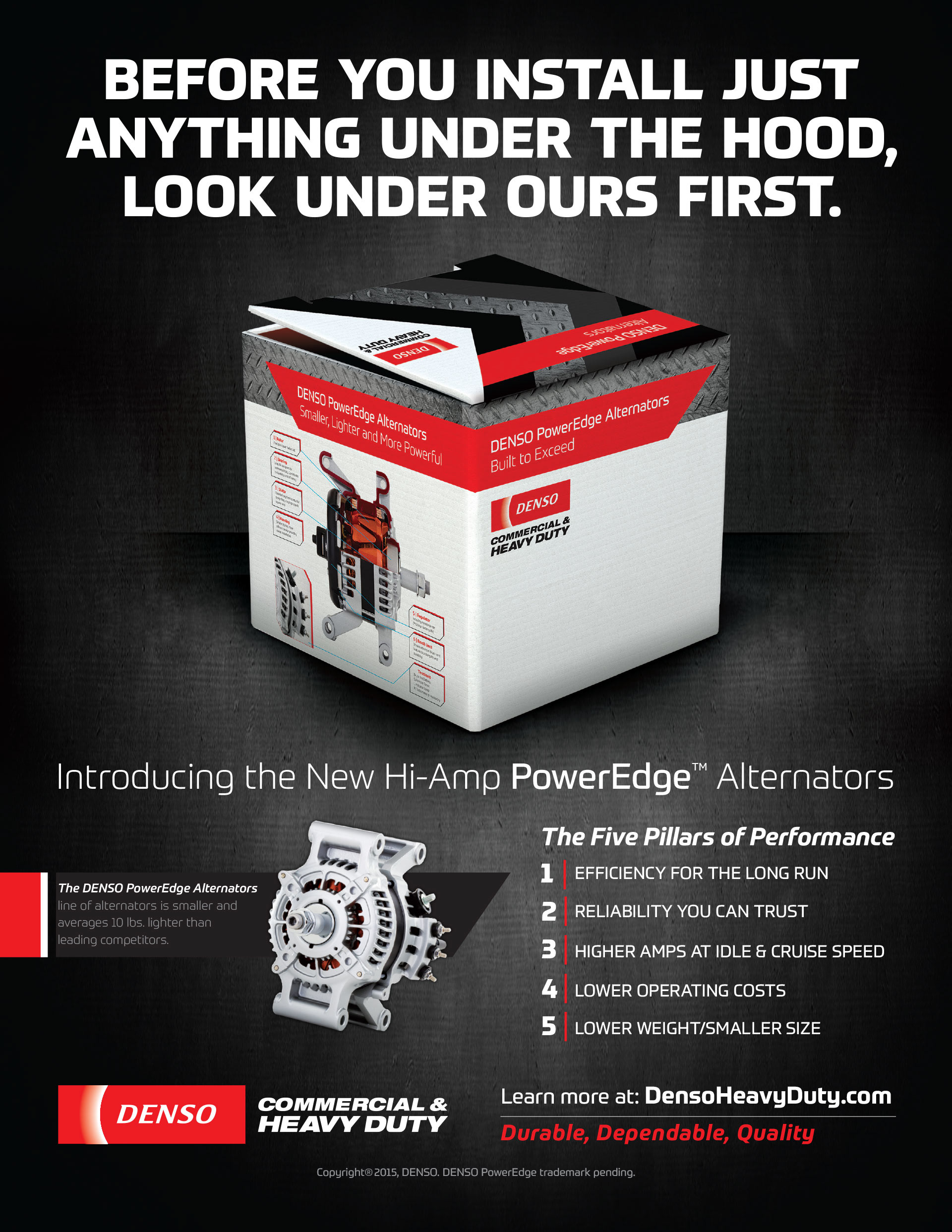 As part of a new product launch campaign, we produced a video, website and magazine ad campaign for DENSO Commercial & Heavy Duty. This department of DENSO is a global OE manufacturer with more than 30 years of experience building the parts that keep the most powerful commercial trucks operating both on the highway and off. Create an online marketing video to drive the launch of DENSO’s new line of highly efficient hi-amp alternators, PowerEdge.