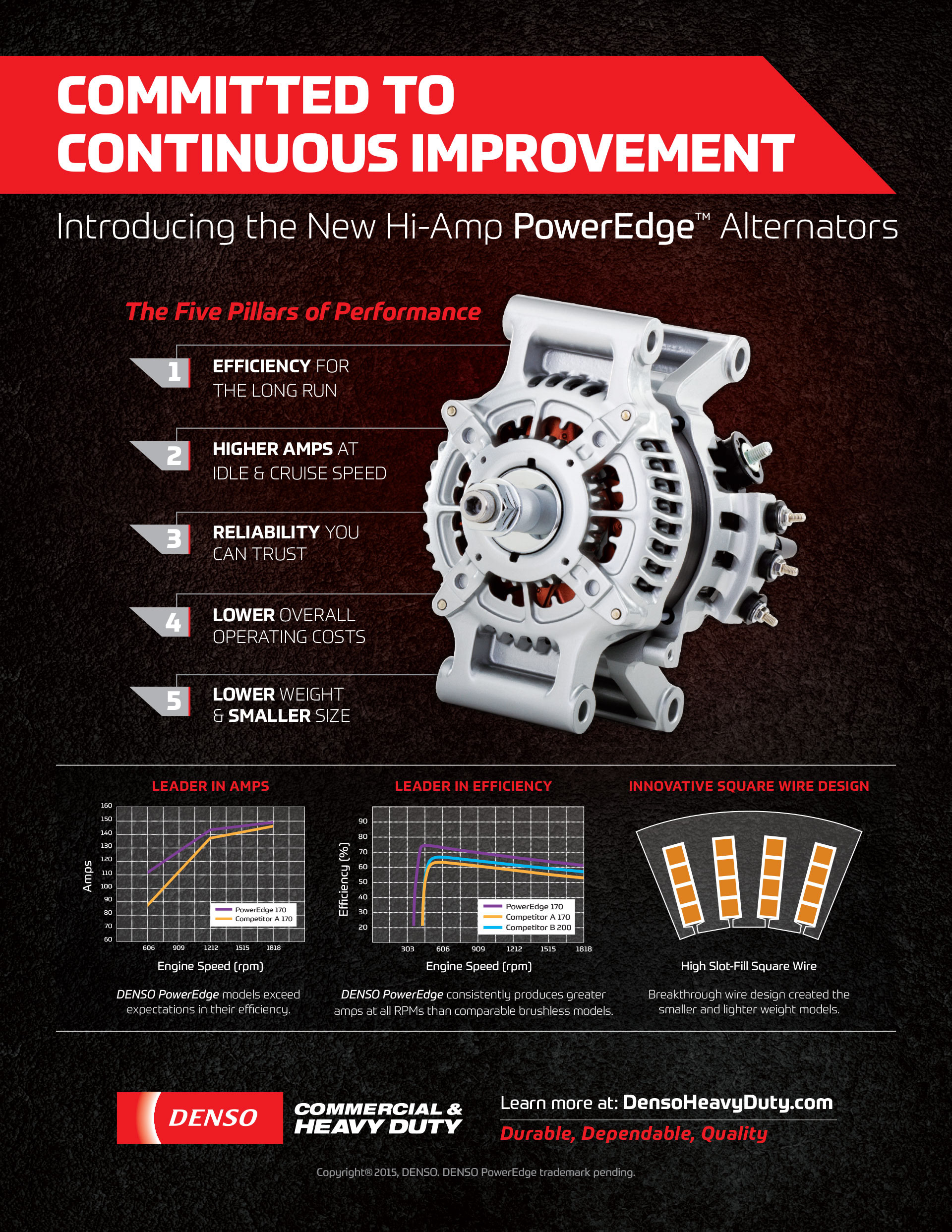 Hi-Amp PowerEdgeTM Alternator is new, lighter weight, more durable, more reliable &greater output at low RPMs.