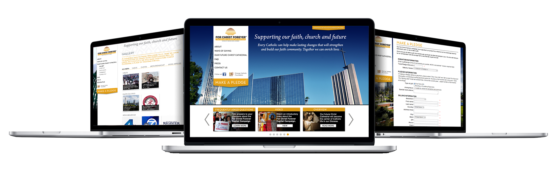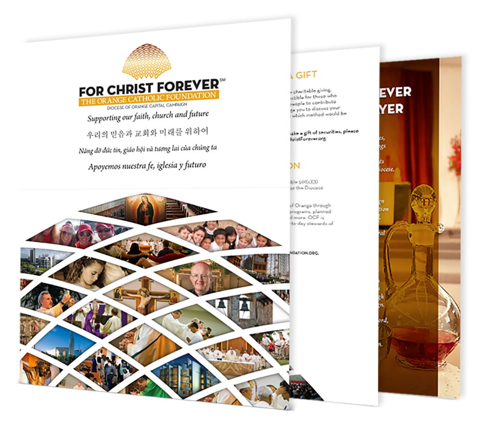 In 2012, the Orange Catholic Foundation embarked on a $100 million capital campaign to support the Future Christ Cathedral (formerly the Crystal Cathedral), local parish support, catholic education, priests’ retirement and diocesan ministries. We developed comprehensive brand and marketing materials, including logo, messaging, brochures, videos, website, email templates, prayer and pledge cards, and more,all in English, Spanish and Vietnamese.